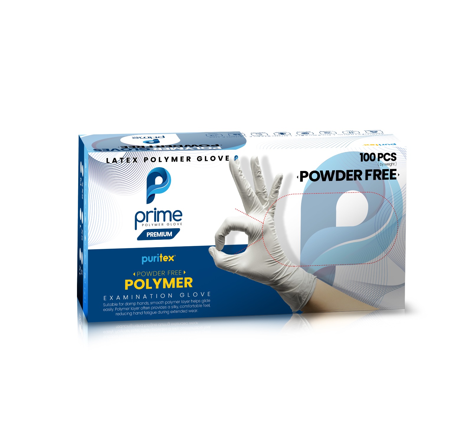 Puritex Prime Latex Powder Free Polymer Coated Examination Glove provide exceptional protection and comfort, making them ideal for various medical and healthcare applications. Made from high-quality natural latex, these gloves are designed to offer a snug fit with a beaded cuff that enhances durability and prevents liquid rollback. The polymer coating ensures smooth donning, while the powder-free design minimizes the risk of contamination, making these gloves suitable for sensitive environments.